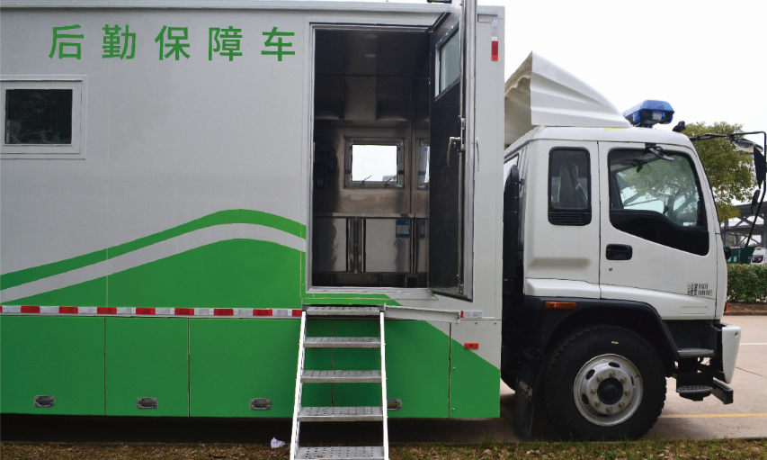 采用重卡底盤改裝,采用開放式廂體結構,配備炊事設備、櫥柜系統(tǒng)、供電系統(tǒng)、供水系統(tǒng)等,滿足搶險救援情況下150-300人的餐飲需求,有效提高餐飲保障能力。