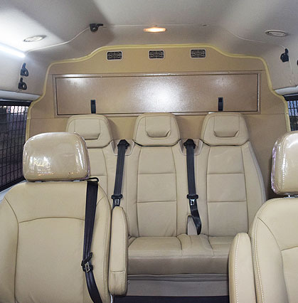 整車輪胎安裝ESD防爆胎側(cè)翻系統(tǒng),保證車輛破后行駛60km。