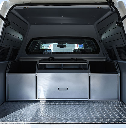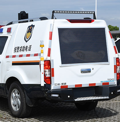 后部封閉箱體,內部根據需要定制裝備柜,滿足執(zhí)法設備隨車攜帶;前后加裝高強度保險杠,可選裝防闖入系統(tǒng),用于提醒現場作業(yè)人員及時躲避危險。