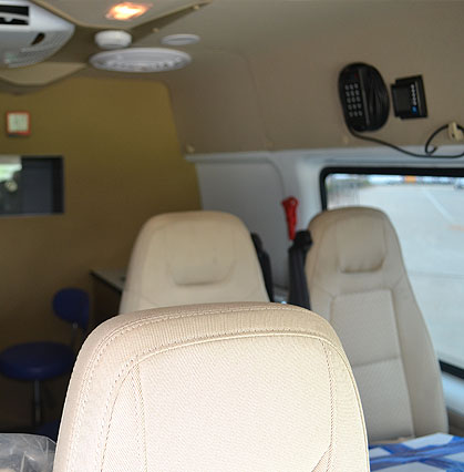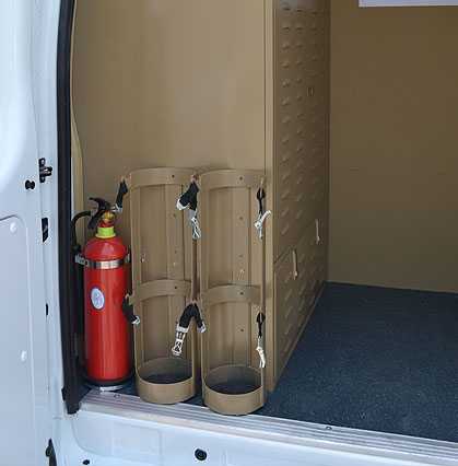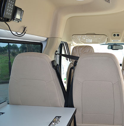 配有安全防護(hù)裝置、穩(wěn)壓電源、滅火器、安全錘等,保證作業(yè)安全;另有車頂攝像機(jī)、硬盤錄像機(jī)等監(jiān)控設(shè)備。