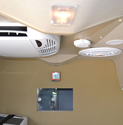 配有PVC防滑耐磨地板、車載空調(diào)、車載冰箱、車內(nèi)照明燈。