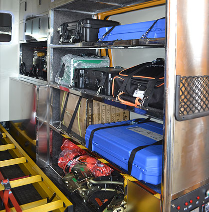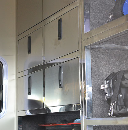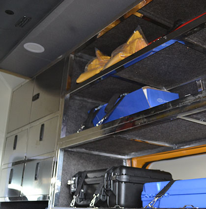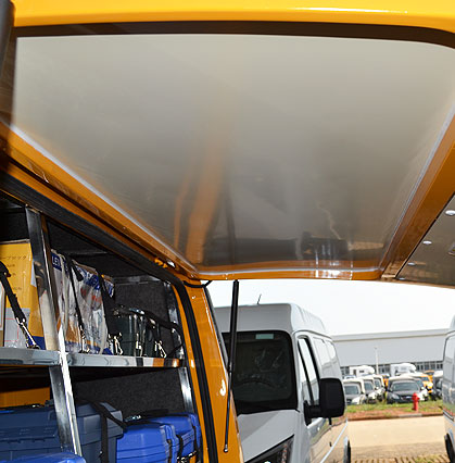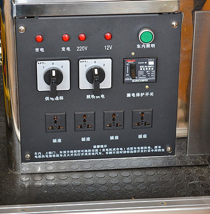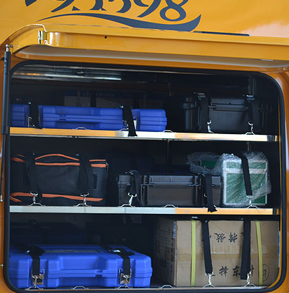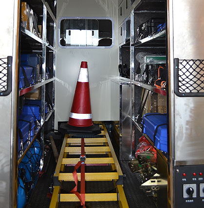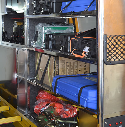 左、右兩側(cè)各有一套組合裝備柜采用不銹鋼鋁型材質(zhì),質(zhì)輕堅固耐用,柜體空間布局合理,容量大;發(fā)電機艙總成,艙體內(nèi)部做隔音/隔熱/降噪處理;車身兩側(cè)和車頂均加焊鋼質(zhì)材料,提高整車強度、穩(wěn)定性及安全性。