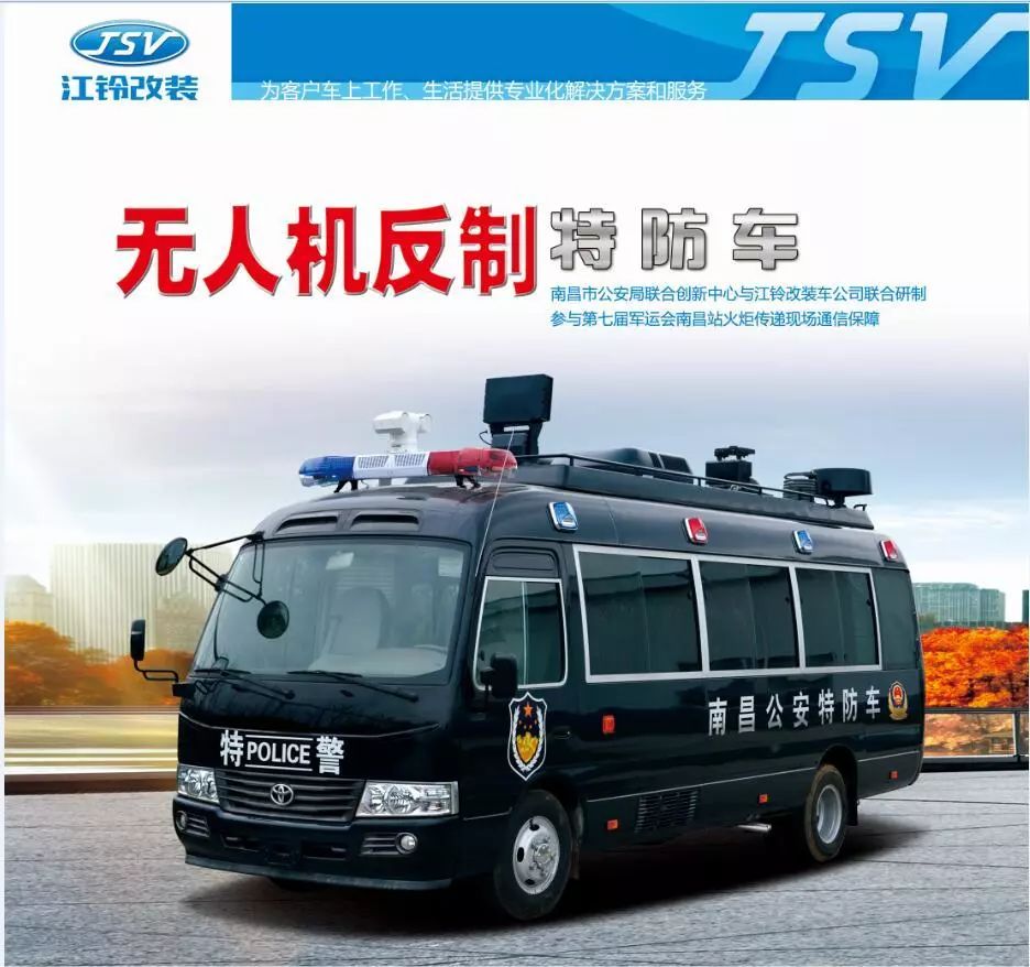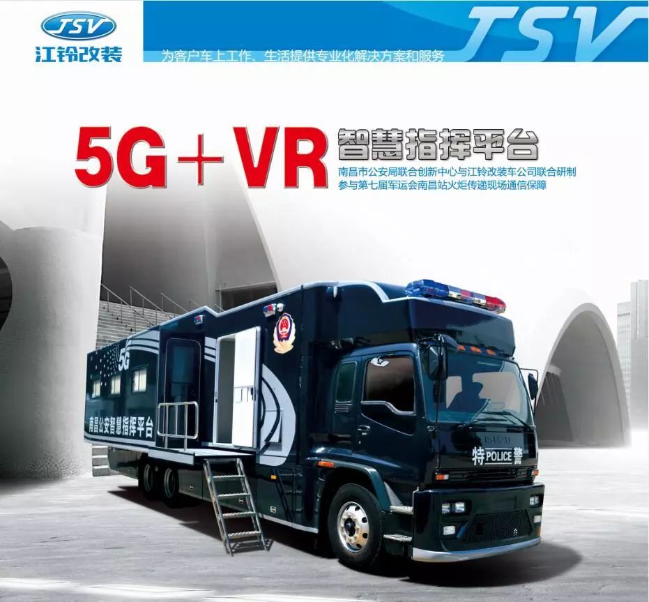由JSV江鈴改裝為南昌公安打造的5G移動智慧指揮平臺、無人機(jī)反制特防車和現(xiàn)場交通指揮車,“三駕馬車”同時首次亮相,從400余家參展商中脫穎而出,成為此次博覽會5G前沿技術(shù)最紅火的"展臺”成了當(dāng)天的一大亮色,贏得了參觀嘉賓的交口稱贊。