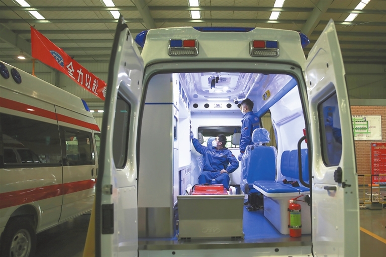從1月22日盤點物料、1月23日啟動生產(chǎn)算起,到2月1日兩輛負壓監(jiān)護型救護車先期抵達武漢。用不足10天的生產(chǎn)時間,就完成了一般情況下需要20天才能完成的改裝任務。江鈴改裝車公司副總經(jīng)理羅旻說,這既得益于工人們的忘我工作,也得益于工信部、江西省工信廳、南昌市工信局等各級工信系統(tǒng)的大力支持。如省工信廳專門派出一名處長在公司蹲點,幫助企業(yè)解決原材料供應商春節(jié)復工、車輛進出、物資通關等實際困難。