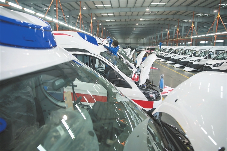 2月6日,江鈴集團改裝車有限公司生產(chǎn)車間,工人們正在抓緊時間生產(chǎn)救護車,確保按時保質保量完成訂單。